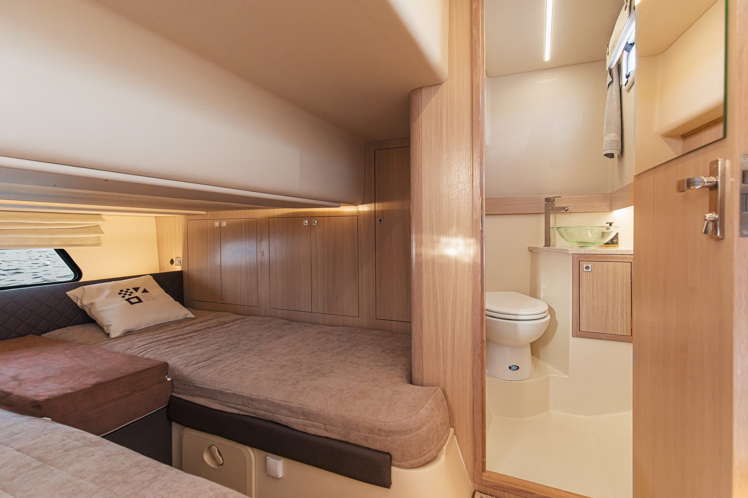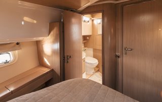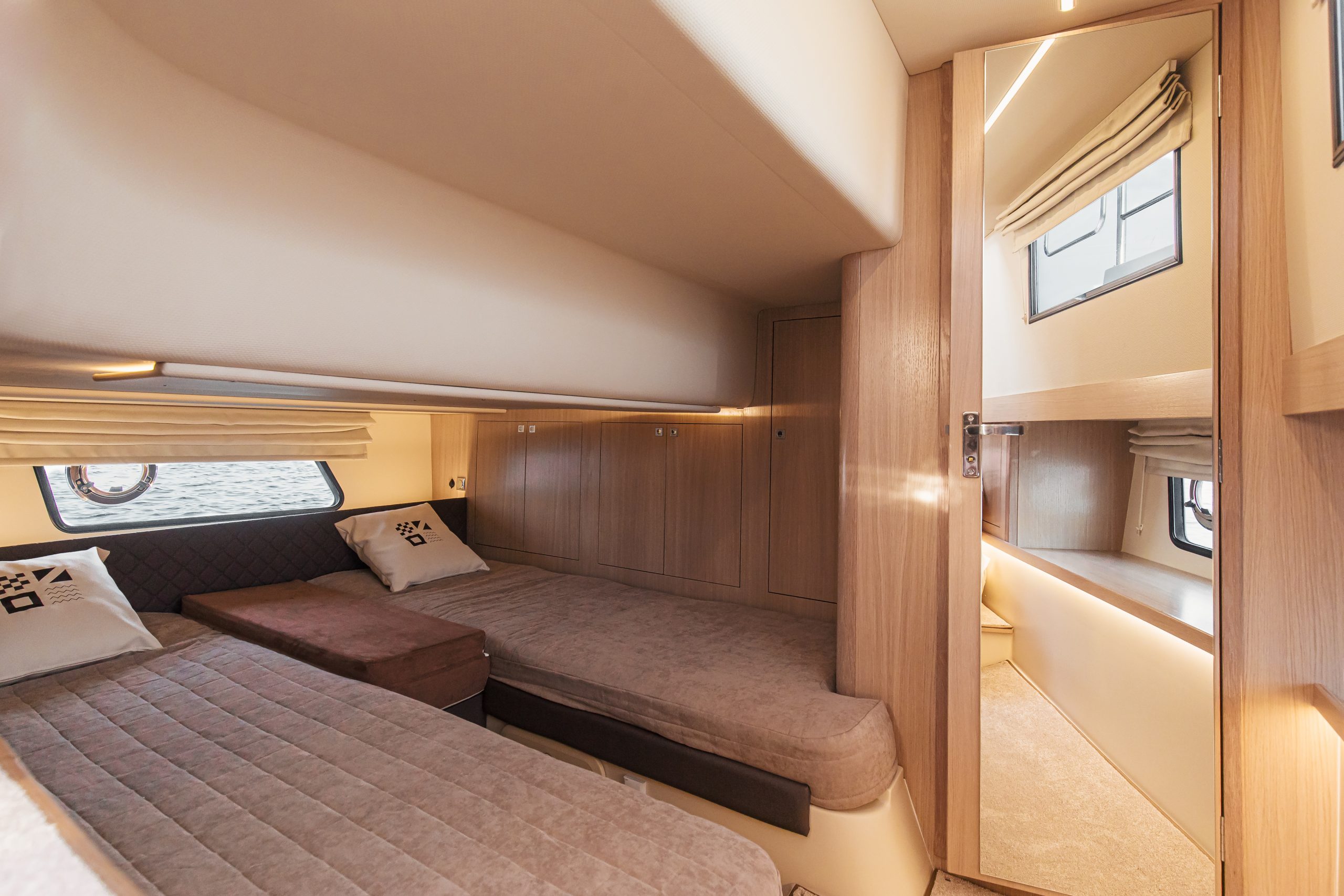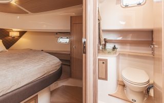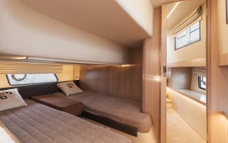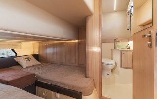Das Leben an Bord der NS42+ ist luxuriös mit zwei separaten Kabinen, jede mit eigenen Toiletten und Duschen, und umfangreichem Stauraum. Die geräumige, moderne Küche neben dem prächtigen Loungebereich bietet Platz für persönliche Zeit und Geselligkeit.